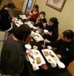 待ちに待った夕食!おいしそうなものがたくさん用意されていて、ごはんをおかわりしながら、おなかいっぱい食べました。