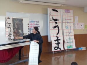 本日は講師の先生をお招きし、筆や道具の使い方・片づけ方、字を上手に書くためのポイントなど、ていねいに教えていただきました。